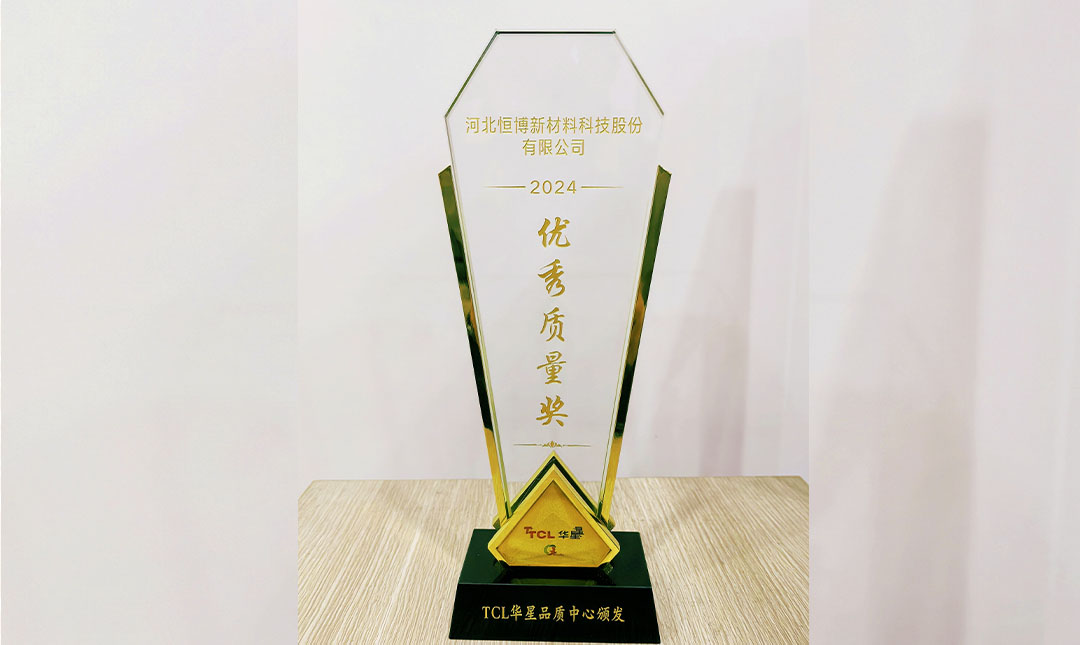 河北恒博新材料科技股份有限公司產品銦錫氧化物材料(ITO靶材),榮獲TCL華星光電品質中心頒發(fā)的“優(yōu)秀質量獎”。